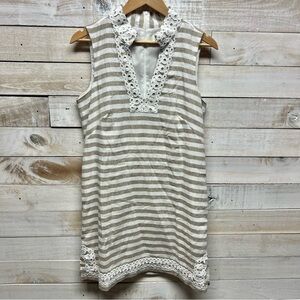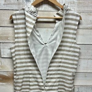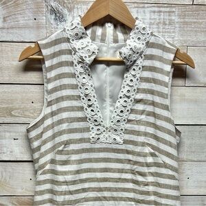 Eliza J Dress Womens 10 Beige White Linen Cotton Sleeveless Stripe Sundress