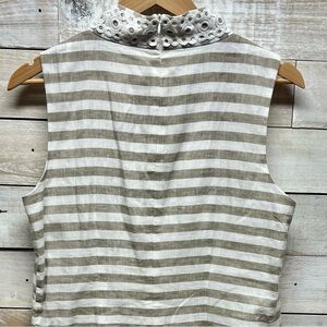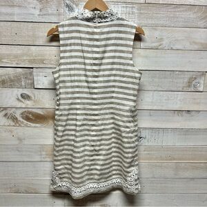 Eliza J Beige White Linen Cotton Sleeveless Stripe Sundress Dress