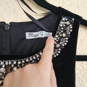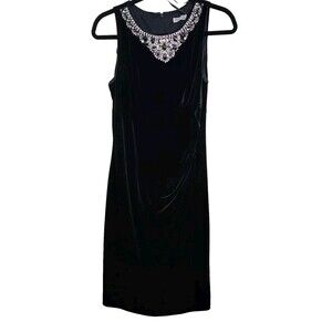 Eliza J Dress Womens 10 Black Sheath Beaded Rhinestone Neck Silver Sleeveless
