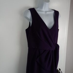 Eliza J Dress Womens 12 Purple Sheath Sleeveless V-Neck Draped Side Knot Bow