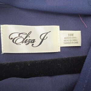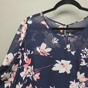 Eliza J Dress Womens 18W Navy Blue Floral Chiffon Long Sleeve Ruffle Hem Shift