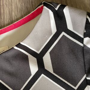 Eliza J Dress Women's 2 Gray Pink Shift Geometric 1/2 Sleeve Art Deco 60's Mod