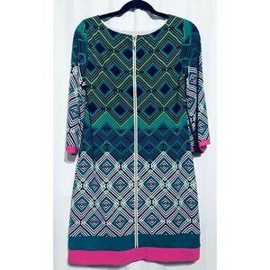 Eliza J Dress Womens 6 Multicolor Geometric Print Jersey Knit Retro Y2K Boho