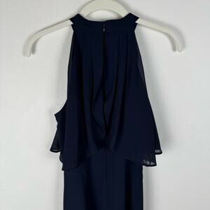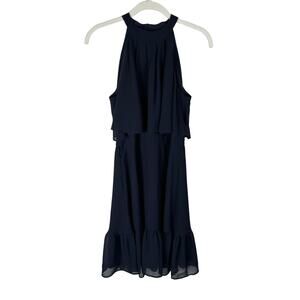 Eliza J Dress Womens Size 4 Tiered Popover Halter Navy Blue Flouncy Sleeveless