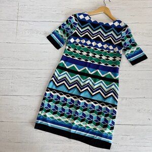 Eliza J Dress Womens Size 4P Blue and Green Geometric Pattern Shift Abstract Mod