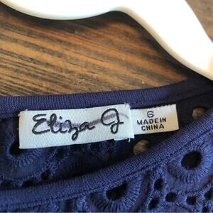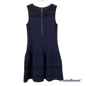 Eliza J Dress Women’s Size 6 Navy Blue Eyelet Drop Waist Sleeveless A-Line