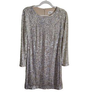 Eliza J Elegant Beige Silver Sequined Sheath Dress Size 8