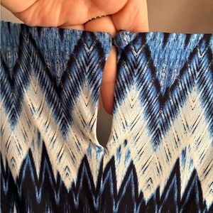 Eliza J Elegant Chic Cold Shoulder Blue and White Geometric Print Dress 14