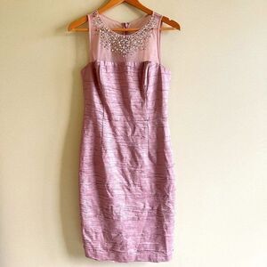 Eliza J Embellished Illusion Metallic Sheath Dress Rose Womens Sz 10 Sleeveless