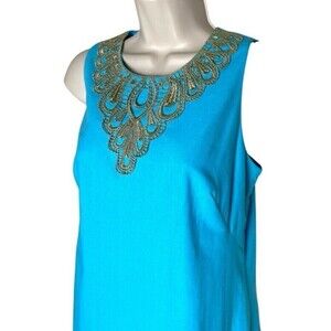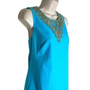 Eliza J Embellished Linen Blend Turquoise Dress Size 4 Sleeveless Lined