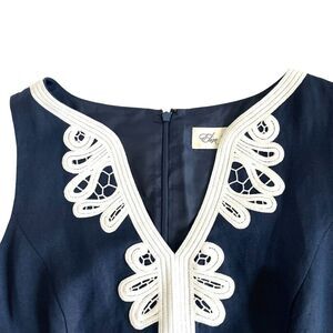 Eliza J Embroidered Neck Sheath Dress 8 Navy Blue