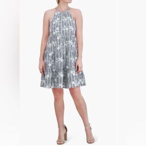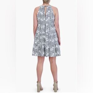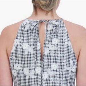 Eliza J Embroidered Floral Gingham Tiered Dress White/Black 8