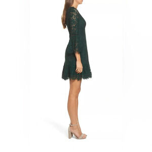 Eliza J Emerald Green Lace Mini Dress 3/4 Bell Sleeve Fit and Flare Size XS