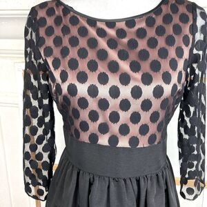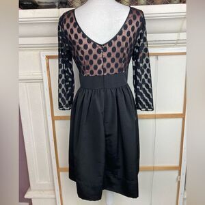 Eliza J. Evening Cocktail dress w/ satin lining punk a boo polka dot lace moire