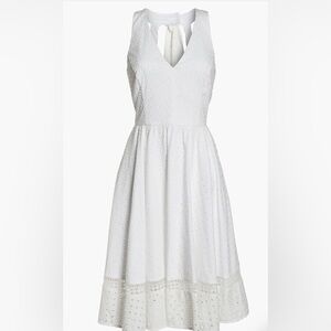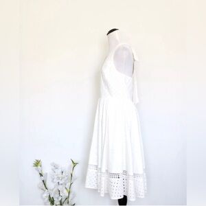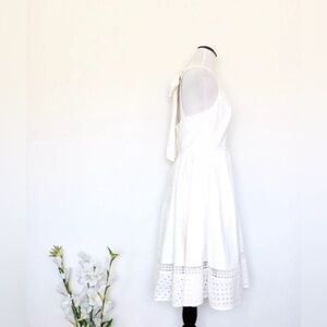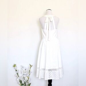 Eliza J Eyelet Bow Back Fit and Flare Dress Sleeveless Pockets White SZ 6