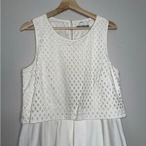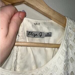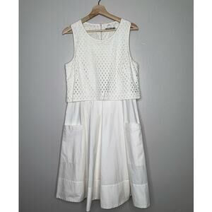 Eliza J Eyelet Detail Fit and Flare Knee Length Dress White Pockets Size 12