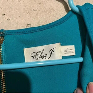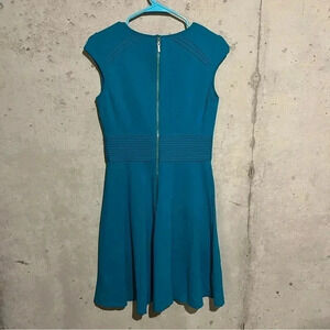 Eliza J Fit & Flare Dress Teal Pleats Sz 6 Exposed Back Zipper Cap Sleeves