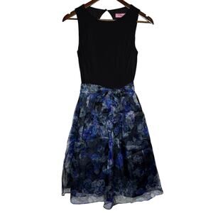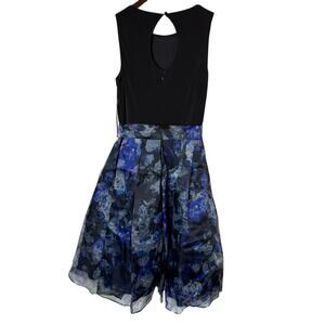 Eliza J Fit and Flare Dress Black with Floral Organza Skirt Belted, size 4