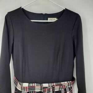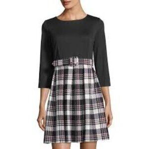 Eliza J Fit and Flare Tartan Plaid 3/4 Sleeve Belted Academia Mini Dress Size 10