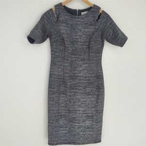 Eliza J Fitted Grey Sparkle Dress Zip Up In The Back Cold Shoulder Sleeves