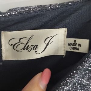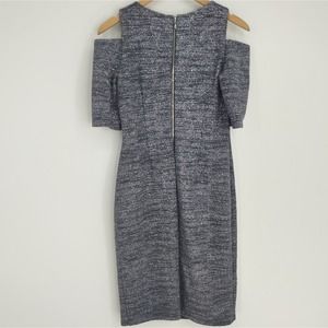 Eliza J Fitted Grey Sparkle Dress Zip Up In The Back Cold Shoulder Size 8