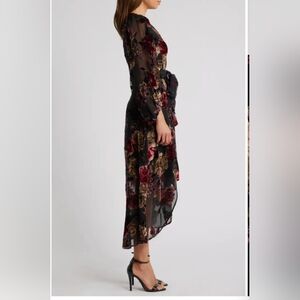 Eliza J Floral Burnout Long Sleeve High-Low Cocktail Dress Sz 14 NO BELT