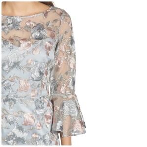 Eliza J Floral Embroidered Sheath Dress 2 Gray Pink Bell Sleeves Floral Womens
