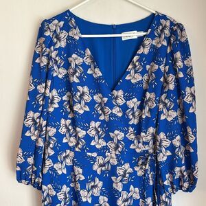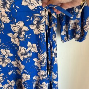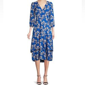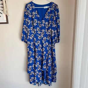 Eliza J Floral Faux-Wrap Tiered Midi Dress Blue Women's Size 18 long sleeve NWT!