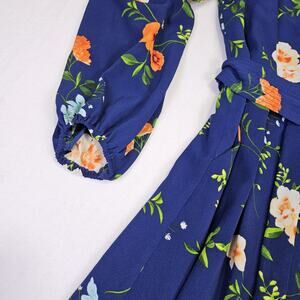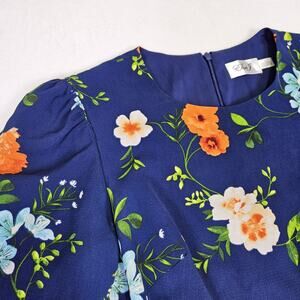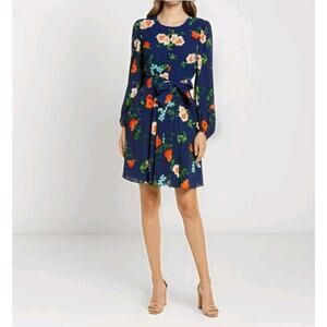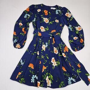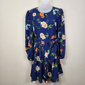 Eliza J Floral Fit & Flare Dress Knee Length 3/4 Sleeve Navy Garden Belt Party 8