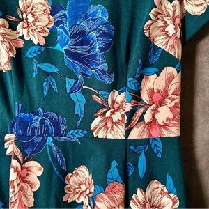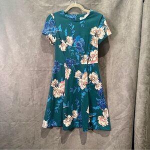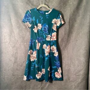 Eliza J Floral Fit & Flare Dress Teal Pink Blue Garden Party Wedding Guest Sz 6