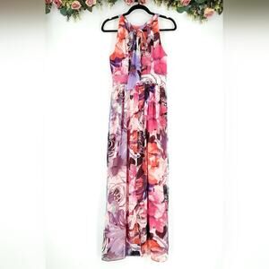 Eliza J Floral Halter Chiffon Multi-color Floral Maxi Dress Petite Size 4