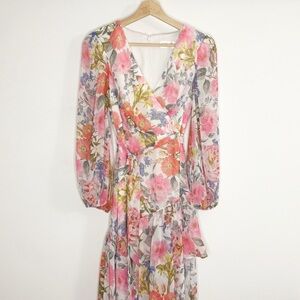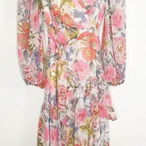 Eliza J Floral High-Low Asymmetric Cocktail Dress Sz 4 Petite