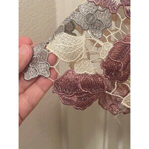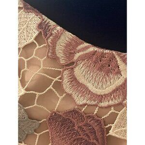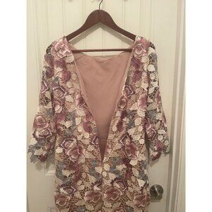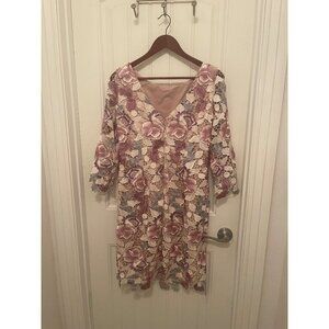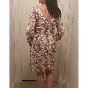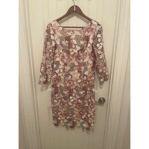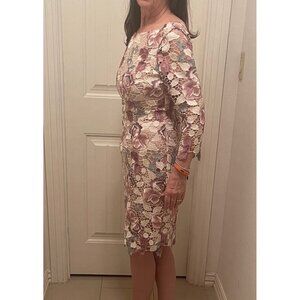 Eliza J Floral Lace Dress Size 8 In Pink & Beige With 3/4 Sleeves & V-Back Desig