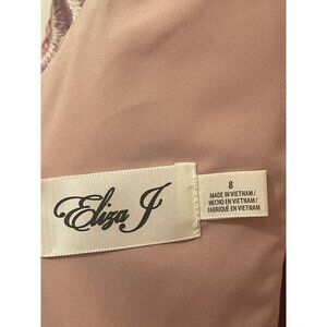In the realm of elegance, where fabric speaks the language of romance, this Eliza J dress captivates with its intricate floral lace. Envision yourself surrounded by whispers of pink and beige, as the 3/4 sleeves and alluring V-back design create a silhouette that beguiles with every step.
