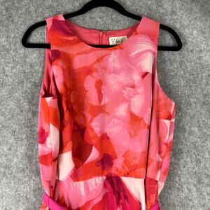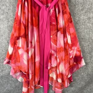 Eliza J Floral Midi Dress Womens 8/10 Pink Red Asymmetrical Sleeveless Flowy