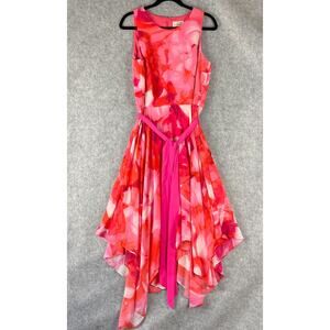 Eliza J Floral Midi Dress Women 8/10 Pink Handkerchief Sleeveless Flowy Cocktail