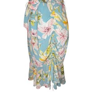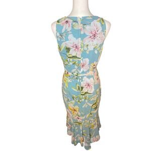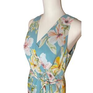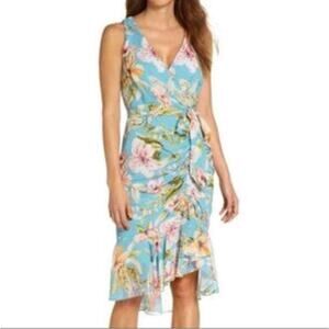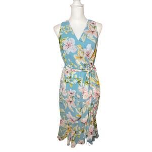 Eliza J Floral Mock Wrap Sleeveless Midi Dress Flutter Hem Sky Blue Size 10