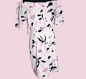 Elegant off-shoulder dress featuring a beautiful floral pattern. Perfect for any occasion.