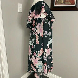 Eliza J Floral One Shoulder Ruffle Shift Dress NEW Green Pink Ruffle Feminine