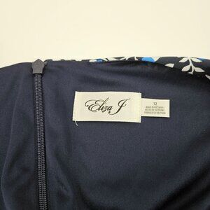Eliza J Floral Print Crossover Front Fit & Flare Dress Black & Blue Women's 12