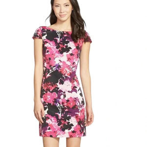 Eliza J Floral Print Faille Sleeveless Floral Sheath Dress Pink Size 6 NWT