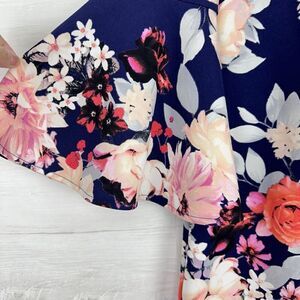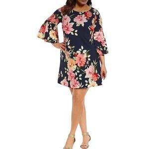 Eliza J Floral Print Mini Shift Dress Women Size 12 Navy Blue Pink Bell Sleeve