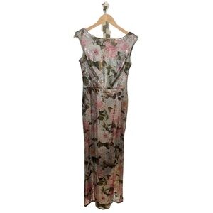 Eliza J Floral Print Sequin Gown in Silver Combo Size 8 NWT