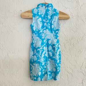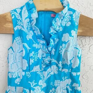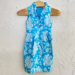 Eliza J Floral V-Neck Ruffle Sheath Dress Sleeveless Blue/White Women 4
