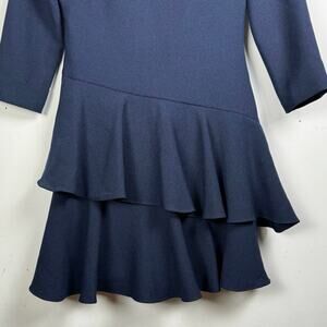 This elegant dress features tiered ruffle details that add a touch of sophistication and flair. The classic navy blue color is versatile and timeless, perfect for a variety of occasions. With a crew neck and 3/4 sleeves, this dress offers a chic and polished look. The hidden zipper closure on the back ensures a seamless and flattering fit. Elevate your style with this stunning piece from Eliza J. Shop now for a dress that will have you turning heads at any event!