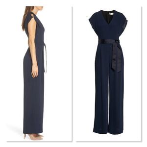 Eliza J Flutter Sleeve Crepe Wide Leg Jumpsuit - size 6 in Blue.