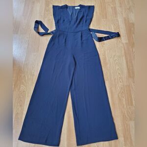 Eliza J Flutter Sleeve Crepe Wide Leg Jumpsuit - size 6 in Blue