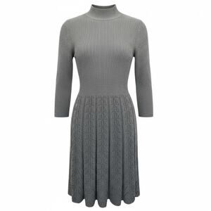 Eliza J Gray Classic Women's Turtleneck Fit & Flare Knit Sweater Dress Small