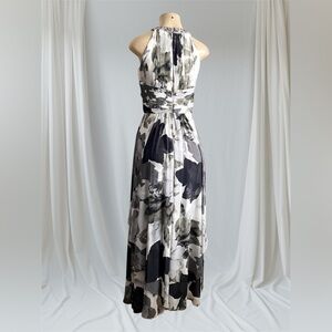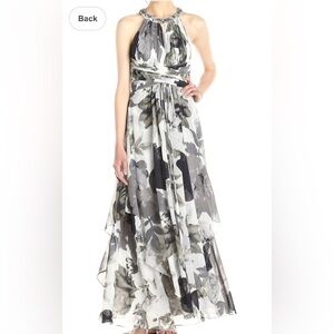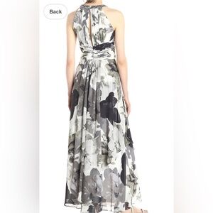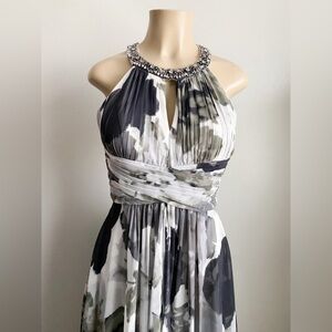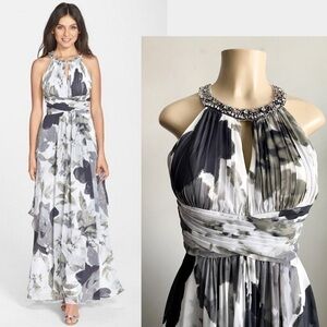 Eliza J Gray Floral Halter Maxi Dress Beaded Empire Formal Gown Event Wedding 2