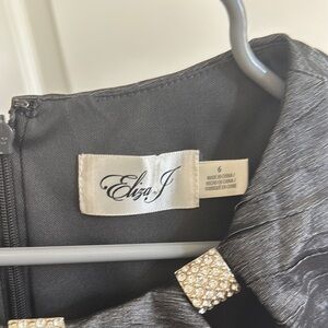 This elegant gray sheath dress by Eliza J is designed for a sophisticated cocktail night out. Featuring a chic halter neckline and sleeveless style, it offers a sleek and modern silhouette. The midi length adds a touch of refinement, making it a perfect choice for an evening affair.